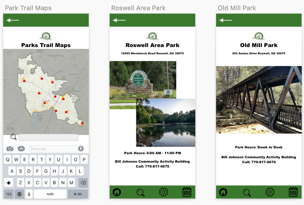 After weeks of reorganizing, testing and analyzing the design and configuration of a new app, the final prototype days have been completed. I created the idea of an app for the city of Roswell, Ga., that creates a platform specifically for recreational activities in the city. From park and trail maps to art festivals and news, this app would cater to the local Roswell resident and give them a place to find information surrounding their community quickly.